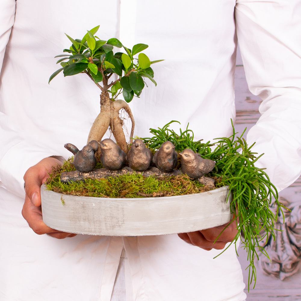 Aranjamentele cu plante si terariile pot contine muschi verde natural. Evitati pe cat posibil udarea muschiului, atunci cand udam celelalte plante. Muschiul verde natural este conservat si nu are nevoie de apa.