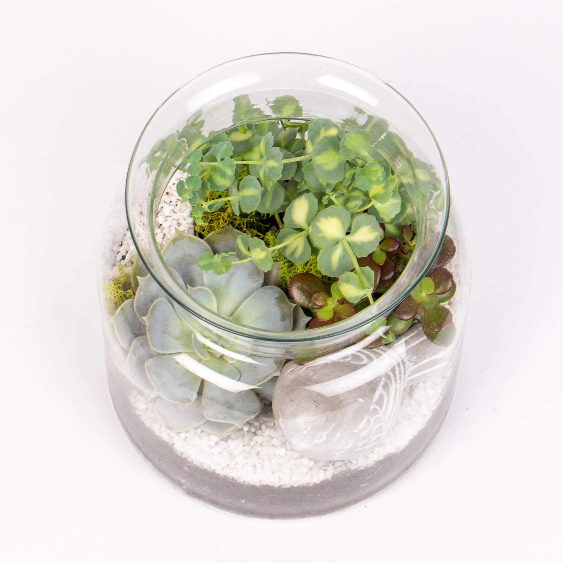 Singurul fel in care putem sa livram in tara, pentru ca produsele sa ajunga cu bine la destinatie, este sa le trimitem sub forma de KIT DO IT YOURSELF. Livrarea in tara se face prin firma de curierat. Practic, vei primi un puzzle pe care va trebui sa il asamblezi. Noi iti vom trimite suportul, pamant, plantele necesare si celelalte elemente de décor si un videoclip cu instructiuni pas cu pas despre cum se realizeaza acest terariu.
