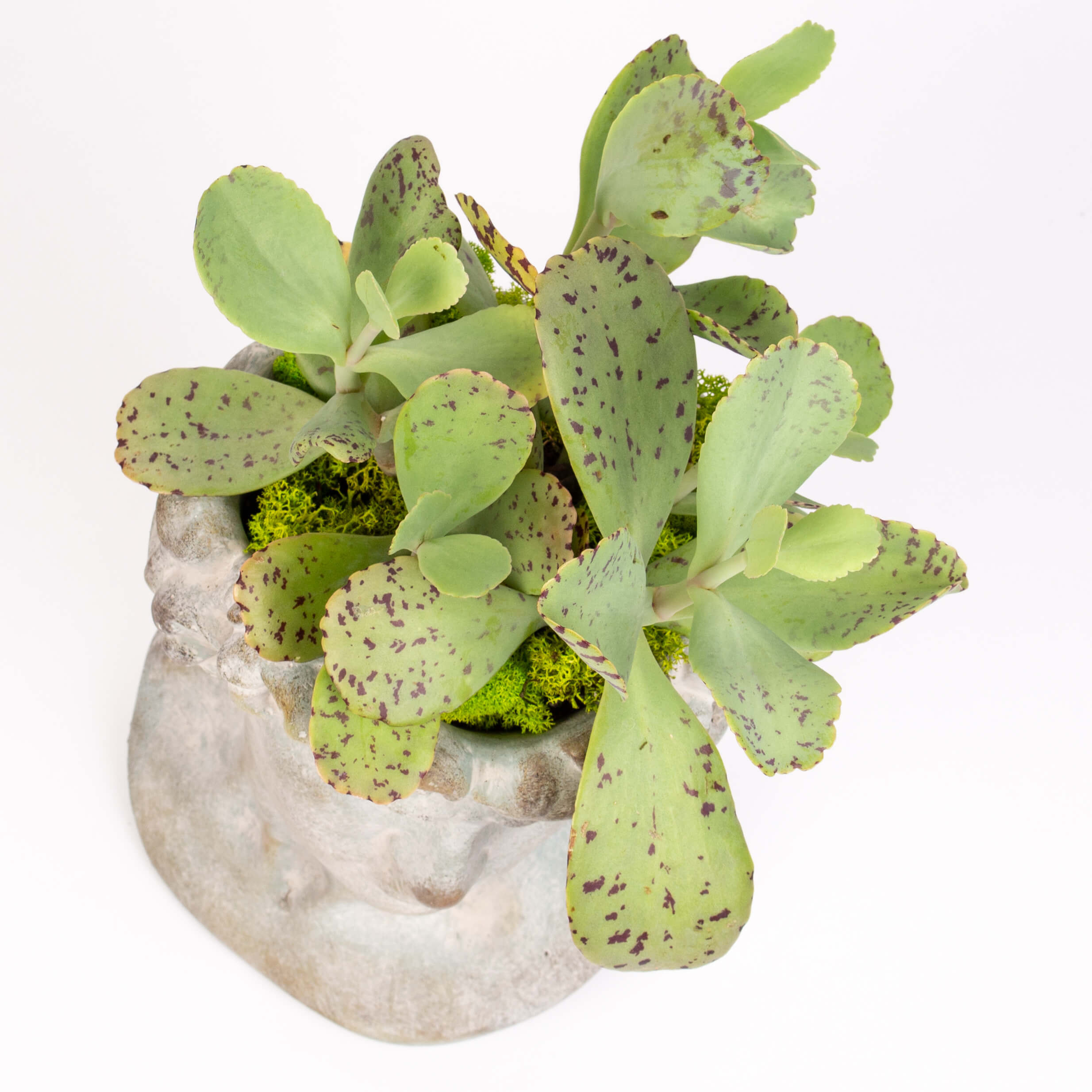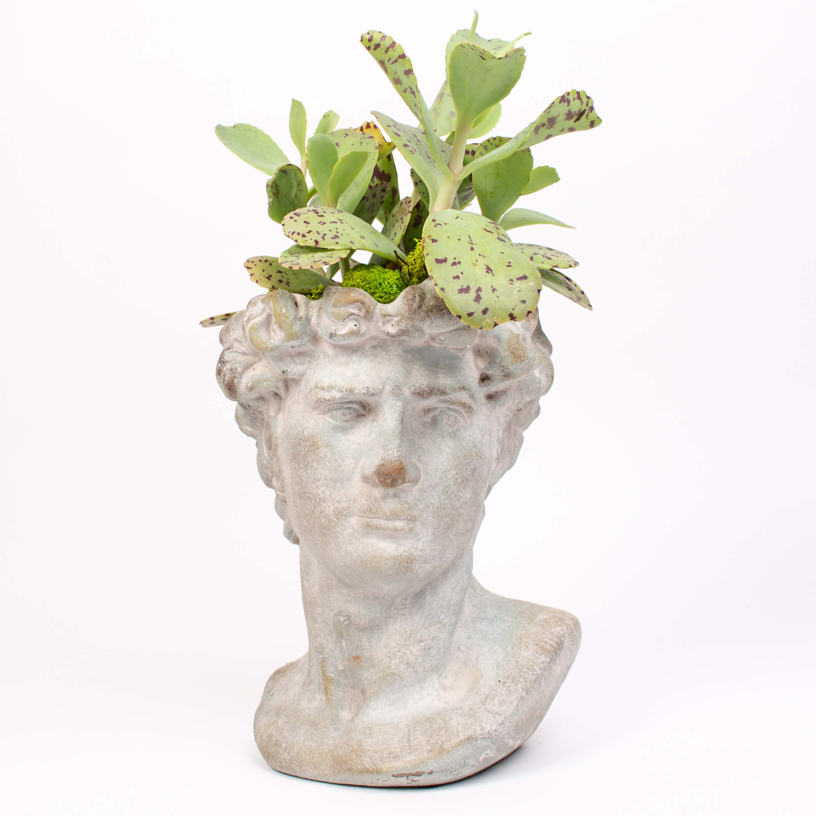 Contine: bust barbat (23 x 17 cm), plante succulente si muschi conservat.