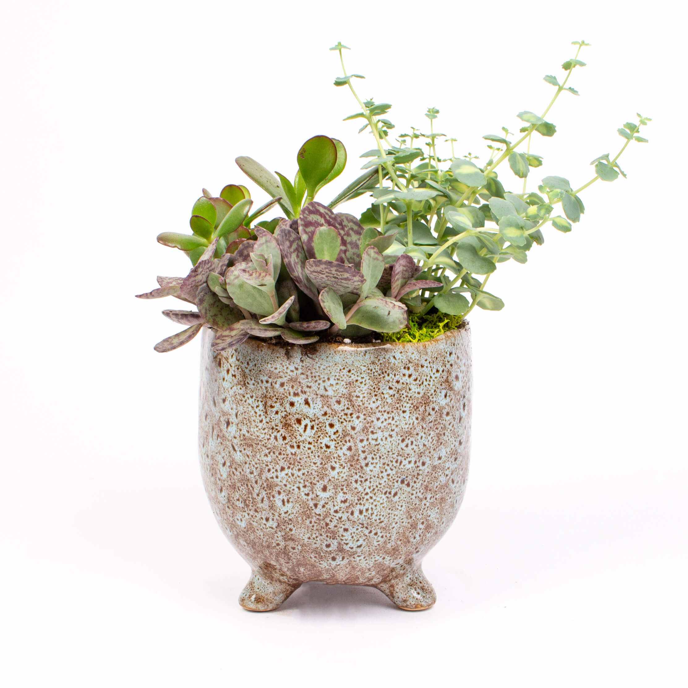 Contine: vas ceramic (14 x 15 cm), plante suculente sedum, muschi conservat.