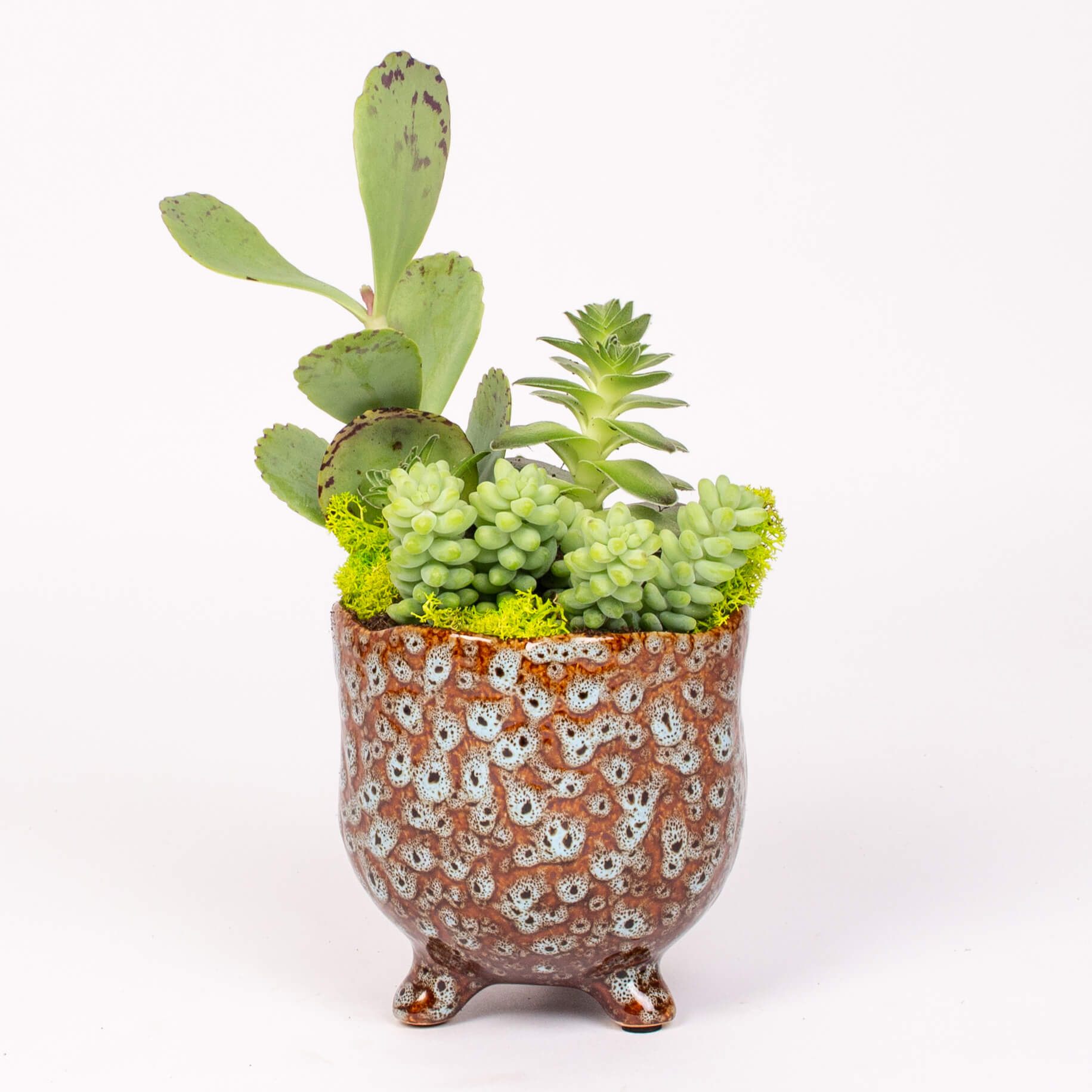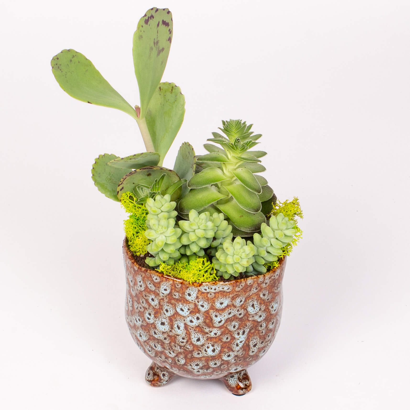 Contine: vas ceramic (11 x 11 cm), plante suculente si muschi conservat.