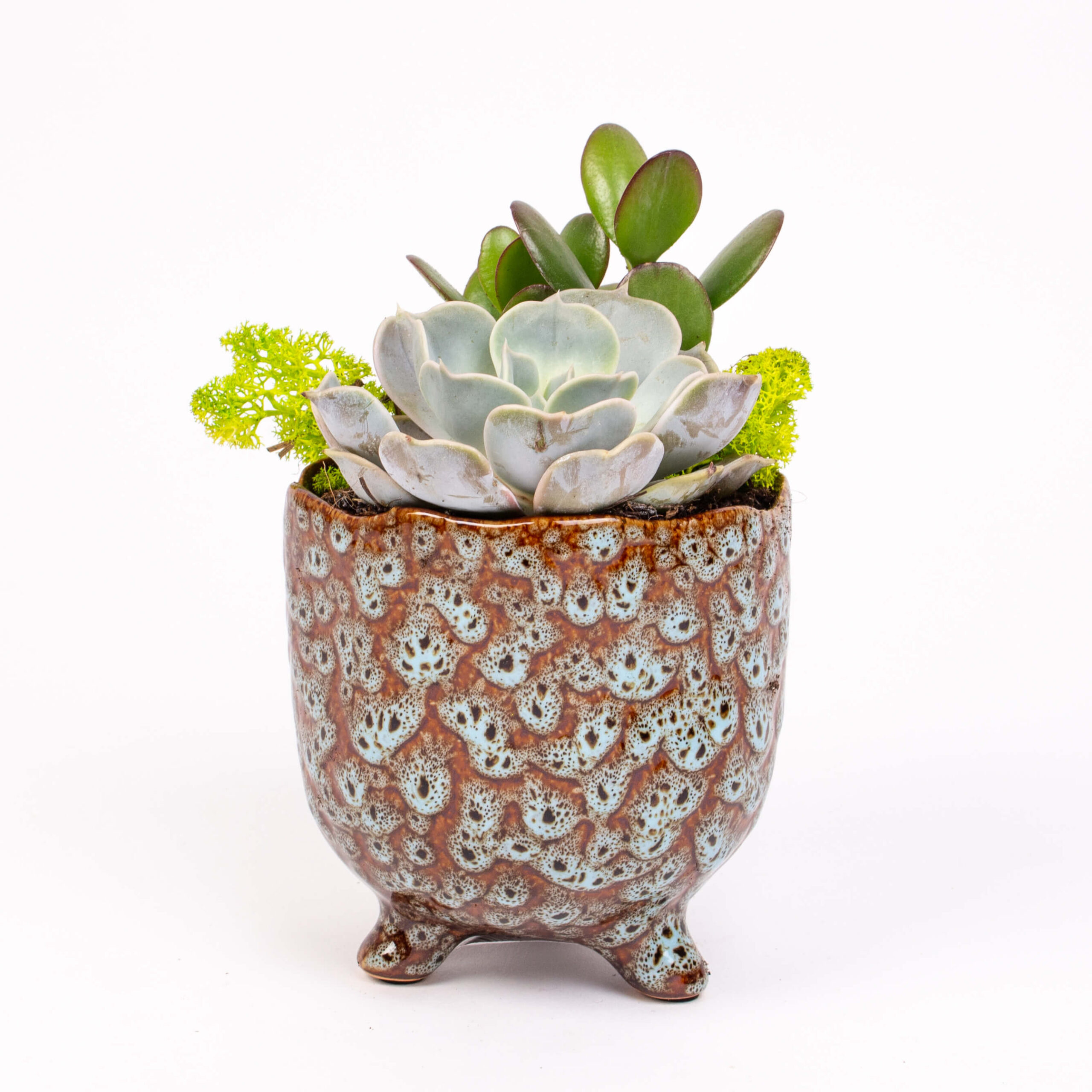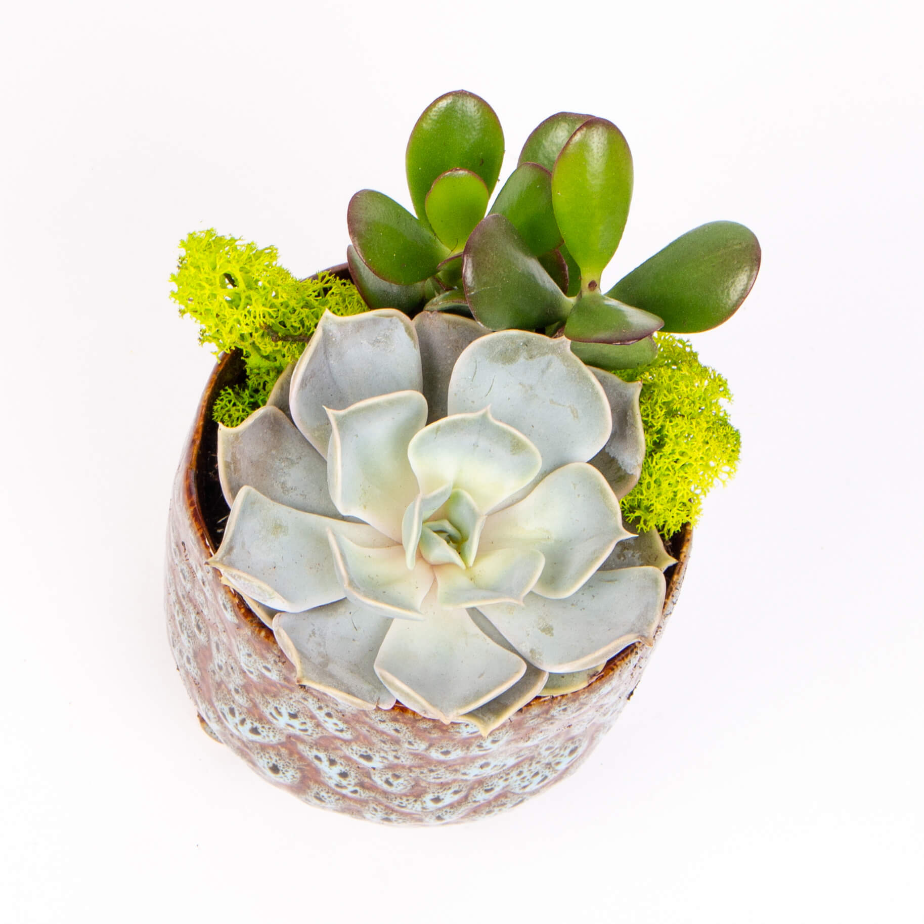 Contine: vas ceramic (11 x 11 cm), plante suculente si muschi conservat.