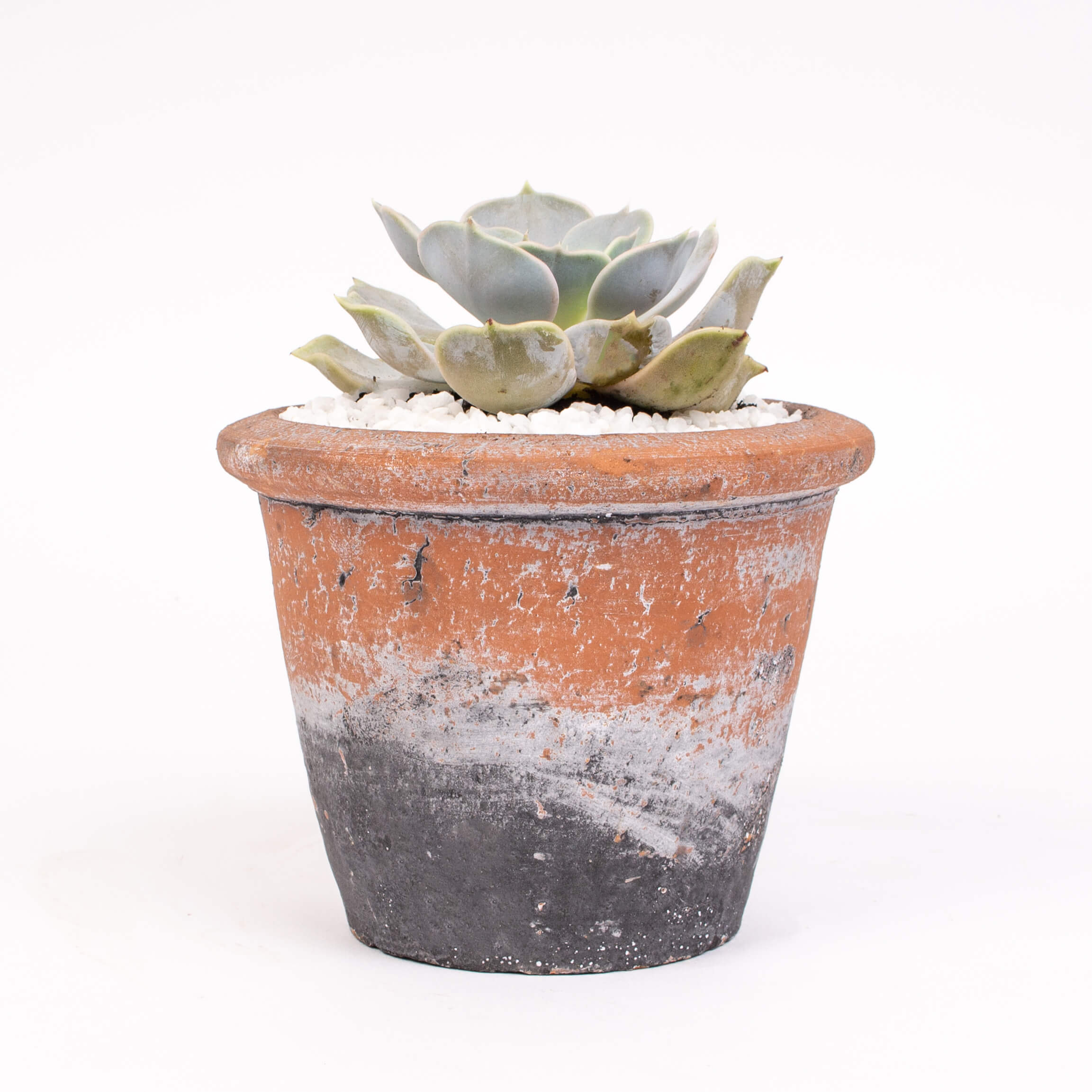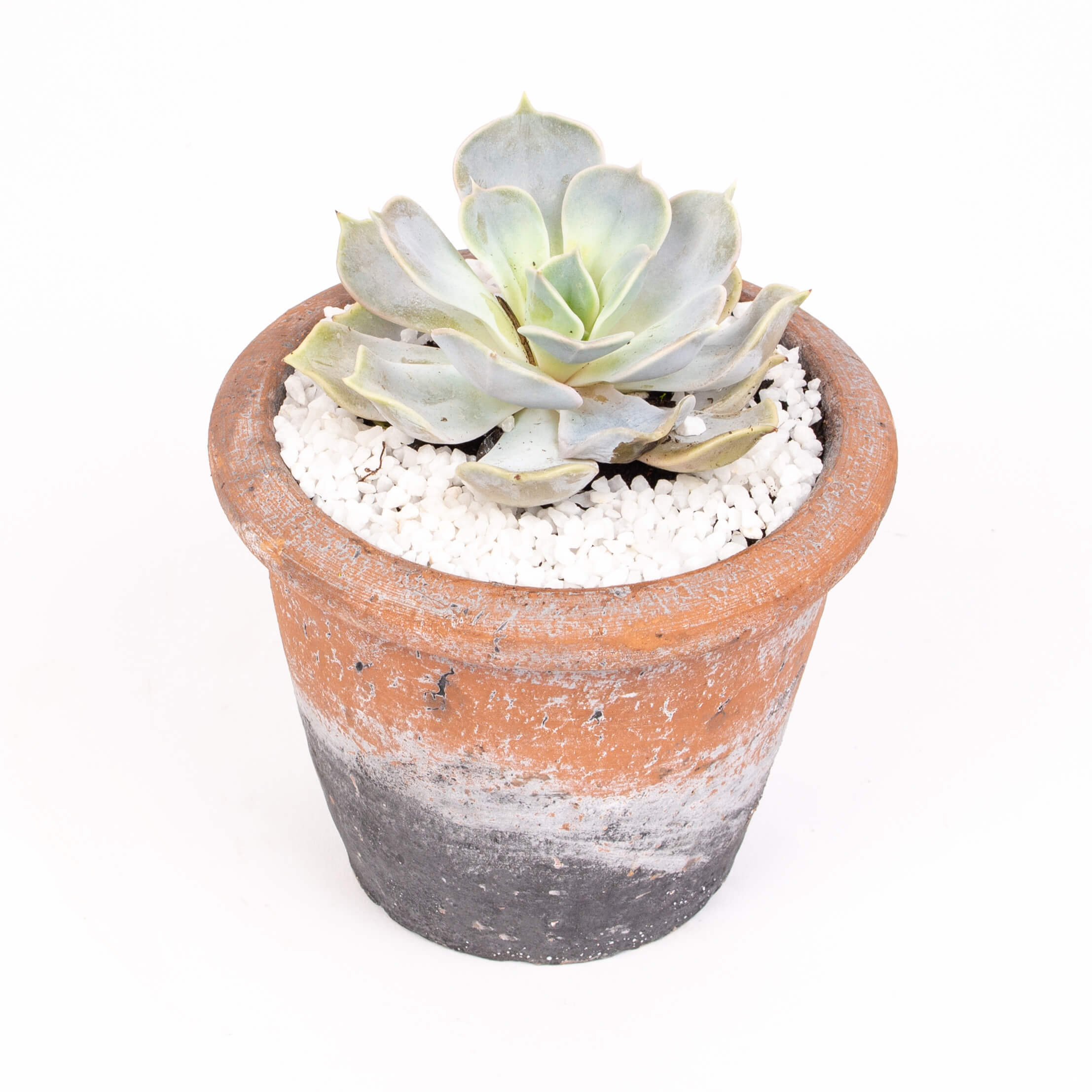 Contine: ghiveci (14 x 12 cm), plante succulente si muschi conservat.