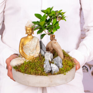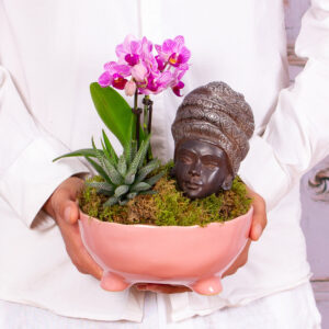 Pocal alb elegant cu Peperomia si Kalanchoe